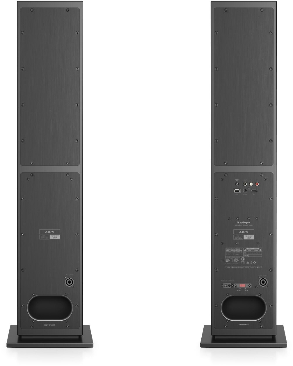 Aufgrund seiner Größe liefert der A48 W ein noch größeres Klangerlebnis als sein Geschwistermodell A38 W. Das größere Gehäuse mit seinen beiden leistungsfähigeren Verstärkern sorgt für einen zusätzlichen Tiefbass. Mit seiner kleinen Grundfläche passt er gut auf den Boden neben dem Fernseher.