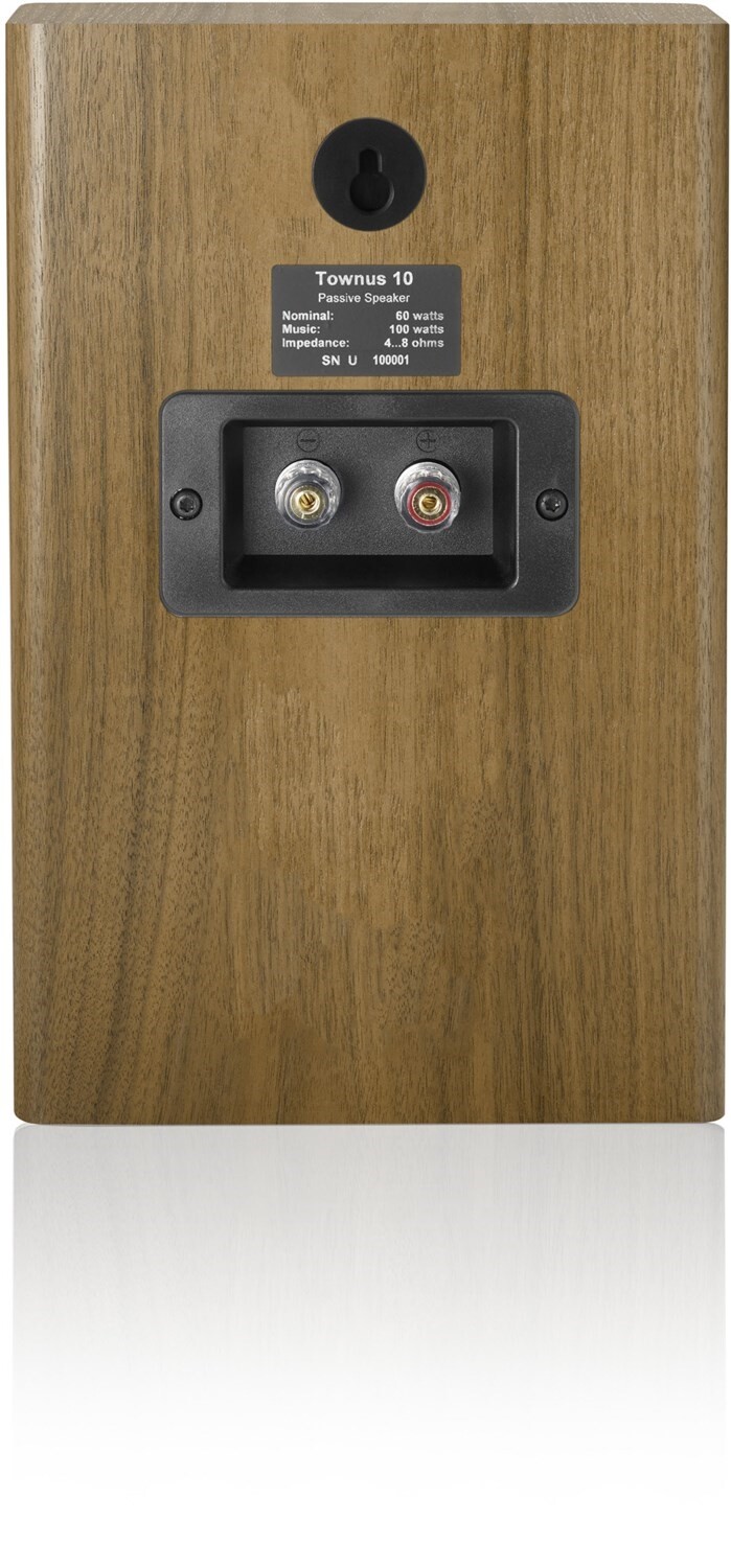 Zudem sorgen hochwertige technische Komponenten in den geschlossenen Gehäusen für eine enorm hohe Zuverlässigkeit: der 154-mm- Tiefmitteltöner mit Titaniummembran und Wave-Sicken-Technologie in Kombination mit der 25-mm- Hochtonkalotte aus Aluminiumoxidkeramik machen den guten Ton. Zu guter Letzt sorgt das exakt berechnete Waveguide des Hochtöners für die Optimierung der Schallabstrahlung und -ankopplung des 2-Wege- Lautsprechers, der bis hinauf zu 40.000 Hertz souverän aufspielt. Dank der integrierten Wandhalterungen lassen sich die Townus 10 spielend einfach an einer Wand montieren und sind im Nu im Einsatz.