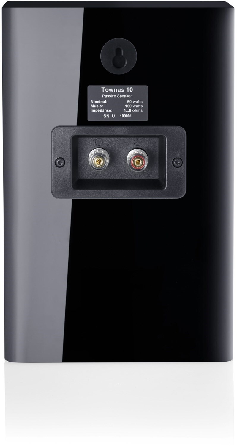Zudem sorgen hochwertige technische Komponenten in den geschlossenen Gehäusen für eine enorm hohe Zuverlässigkeit: der 154-mm- Tiefmitteltöner mit Titaniummembran und Wave-Sicken-Technologie in Kombination mit der 25-mm- Hochtonkalotte aus Aluminiumoxidkeramik machen den guten Ton. Zu guter Letzt sorgt das exakt berechnete Waveguide des Hochtöners für die Optimierung der Schallabstrahlung und -ankopplung des 2-Wege- Lautsprechers, der bis hinauf zu 40.000 Hertz souverän aufspielt. Dank der integrierten Wandhalterungen lassen sich die Townus 10 spielend einfach an einer Wand montieren und sind im Nu im Einsatz.