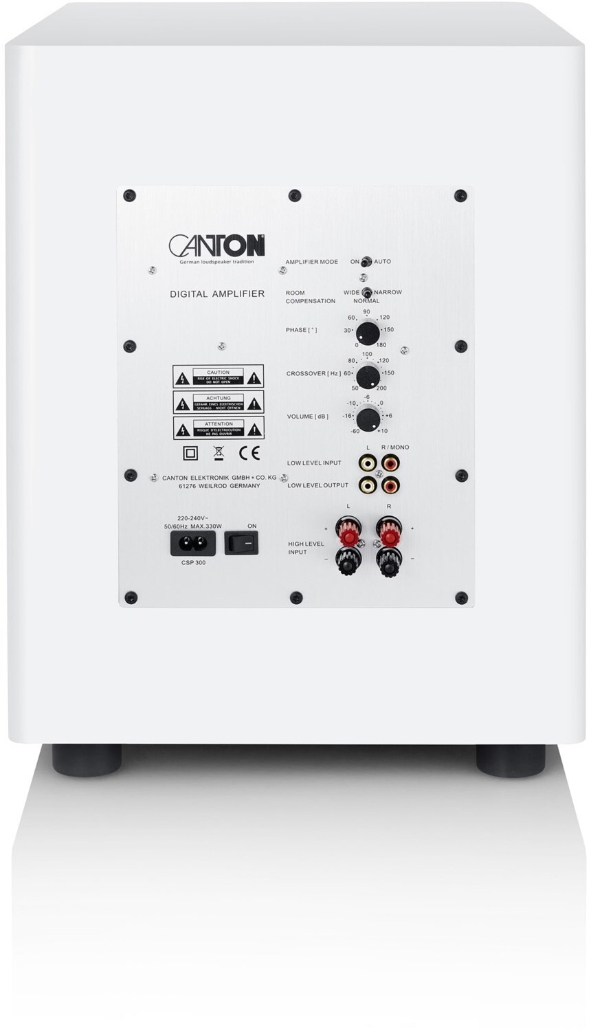 Der Townus Sub 12 Aktiv-Subwoofer von Canton arbeitet nach dem Bassreflexprinzip mit Downfire- Passivmembran. Um eine präzise mechanische Leistungsfähigkeit zu garantieren, ist er mit einem üppig dimensionierten Antrieb inklusive Wave-Sicken-Technologie der neuesten Generation ausgestattet.