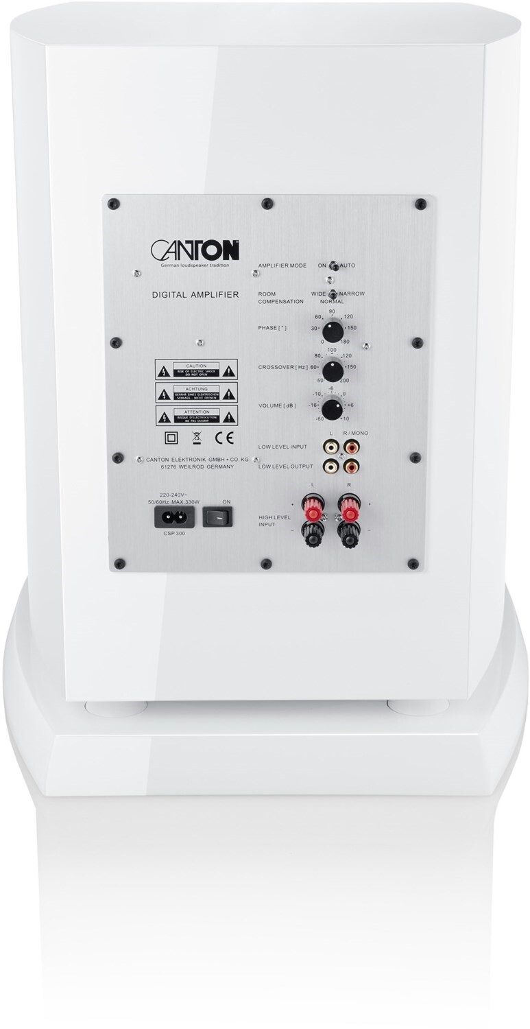 Der aktive Frontfire-Subwoofer glänzt mit der neusten Treiber-Technologie aus dem Hause Canton: sein 308-mm-Subwooferchassis mit hoch steifer Membran aus Titanium Graphit und die ebenso große Downfire- Passivmembran ermöglichen eine exzellente Bass-Performance bei höchster Präzision. Ausgerüstet mit Bassmanagement und SC-Technologie bietet er saubere, druckvolle Bässe – ob frei stehend, in Wandnähe oder in einer Ecke positioniert.