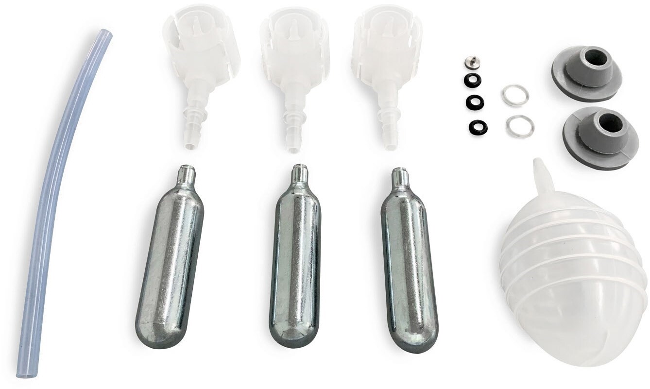 - Lieferumfang: Bierschlauch, Heineken-Adapter, 3 CO2-Patronen, Reinigungspumpe etc.