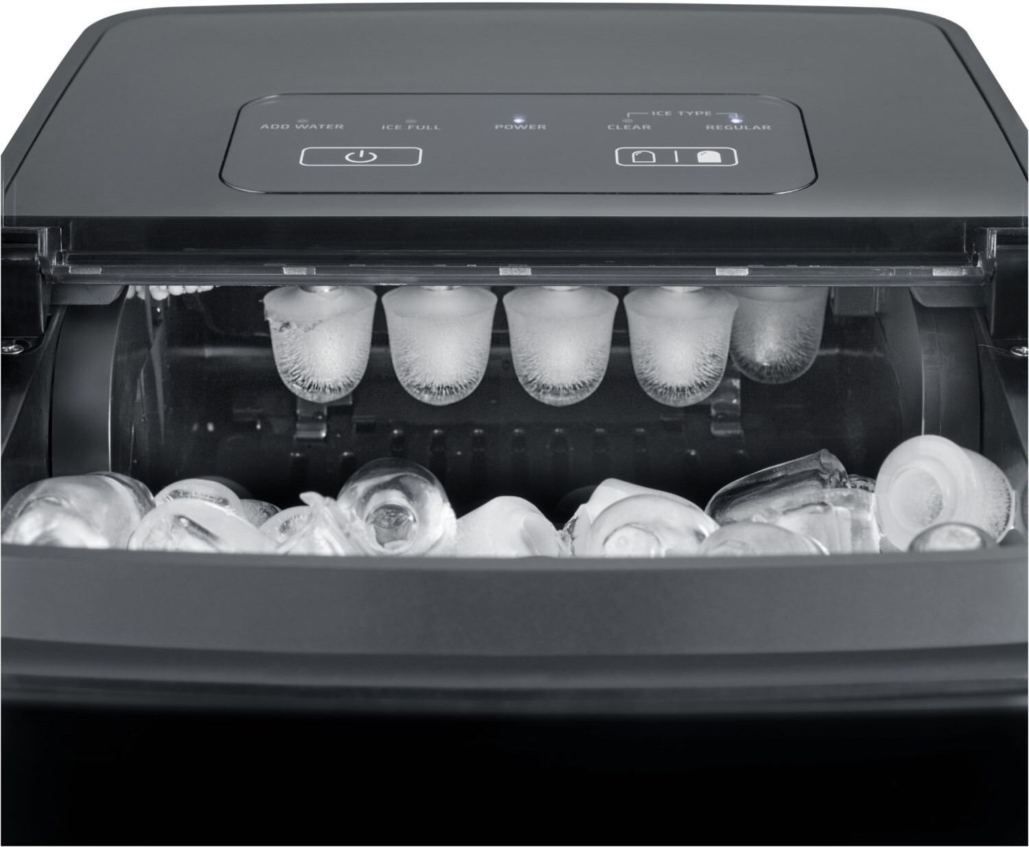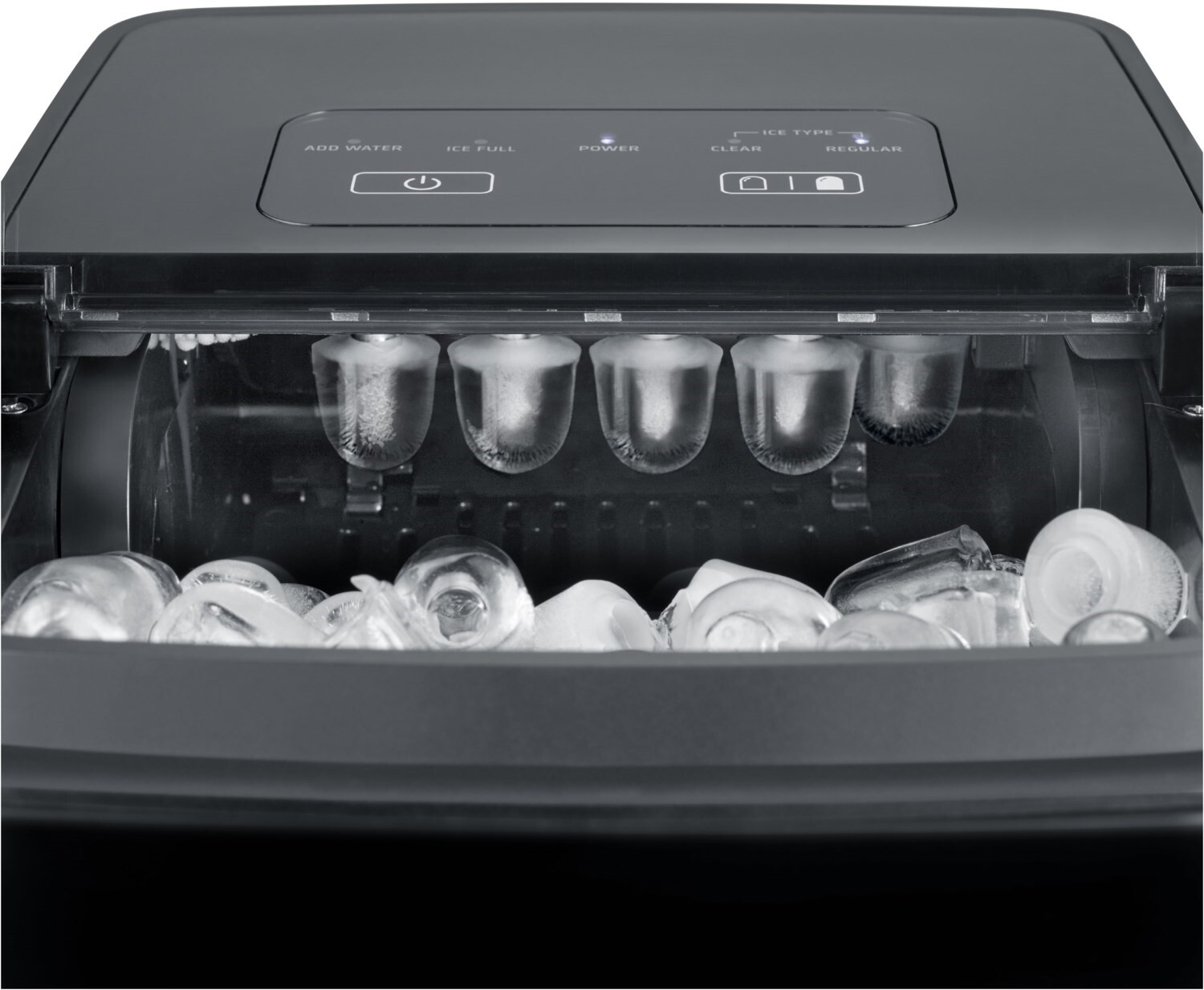 - Praktisches Sichtfenster für einen schnellen Überblick, Anzeige bei leerem Wassertank und bei vollem Eiswürfelbehälter