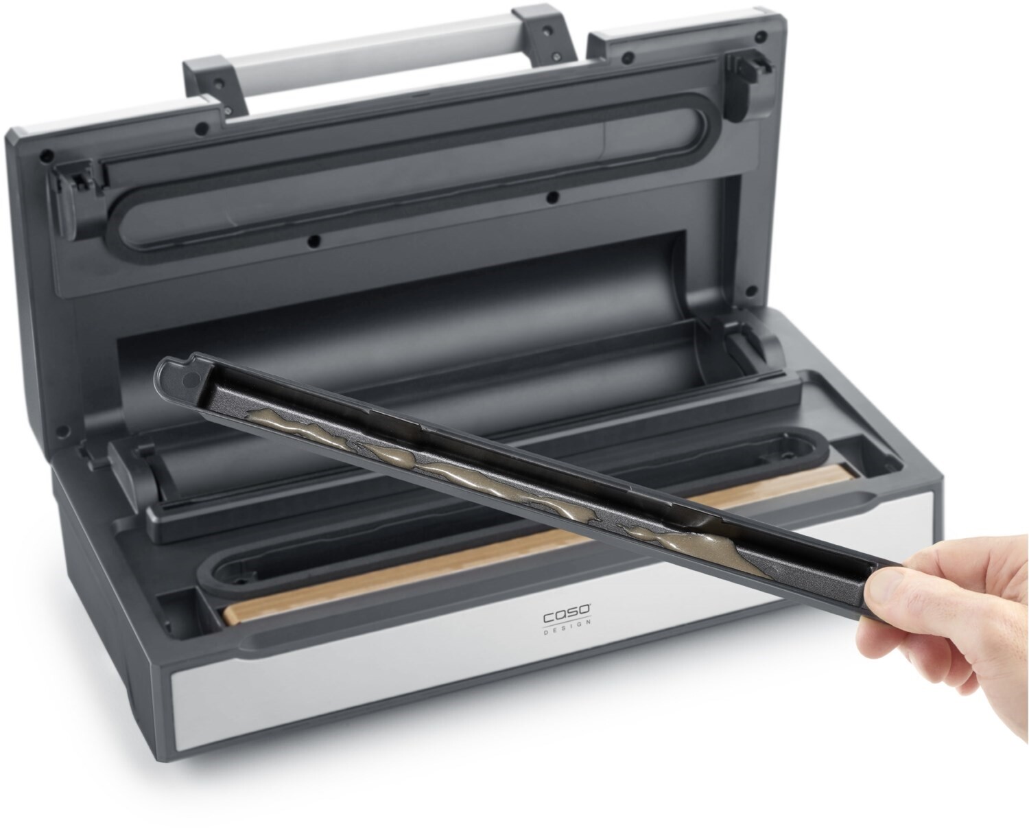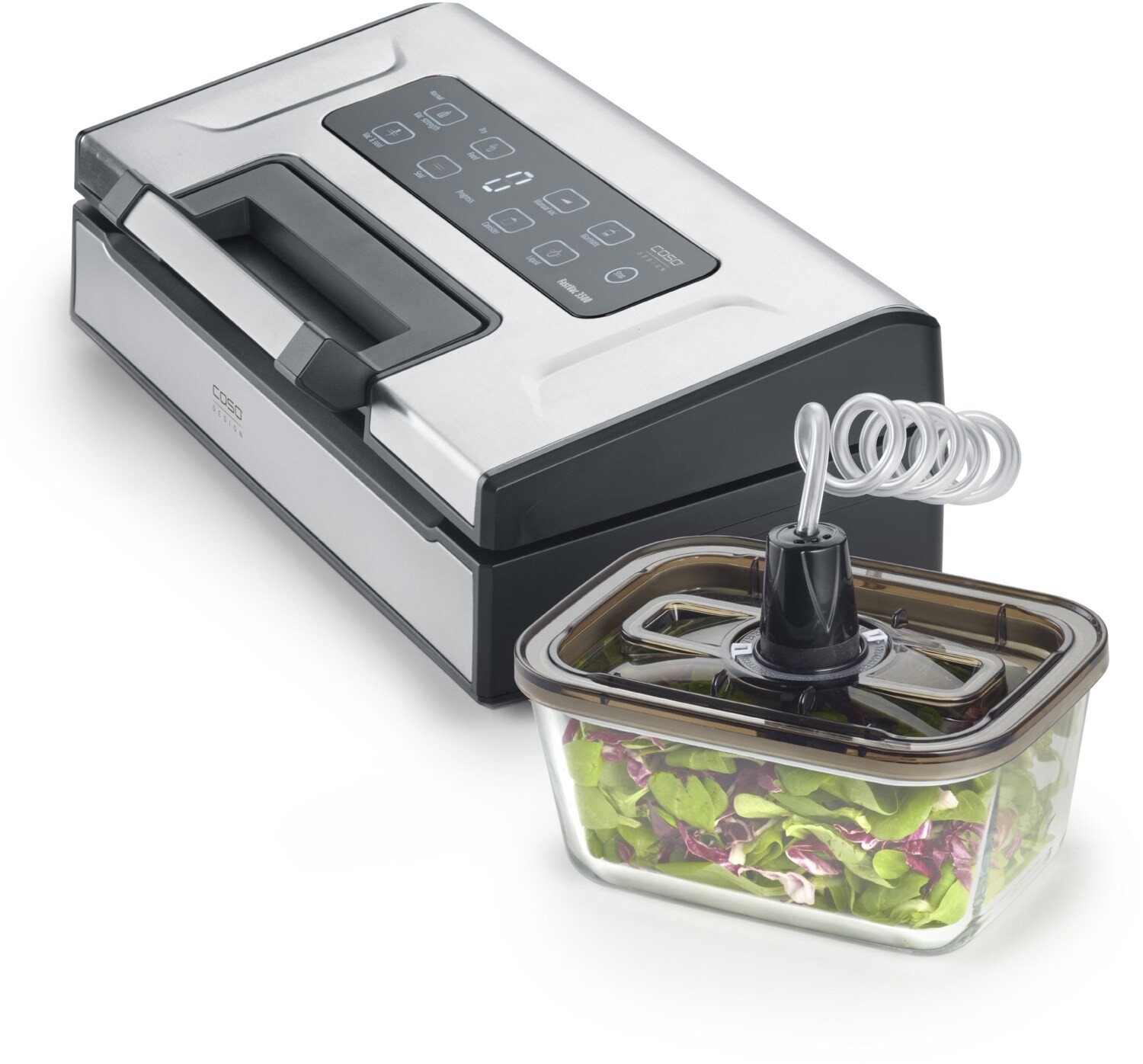 - Mit innovativer patentierter CASOTEK® Liquid Funktion -vakuumiert Flüssigkeiten, z.B. Suppen, Saucen uvm., automatisch per Knopfdruck ohne sie einzusaugen