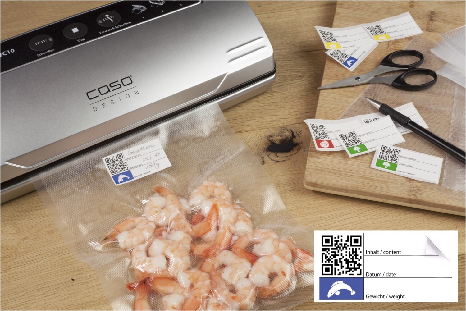 - inkl. Etiketten mit QR-Code zur Beschriftung mit Inhalt, Datum und Gewicht