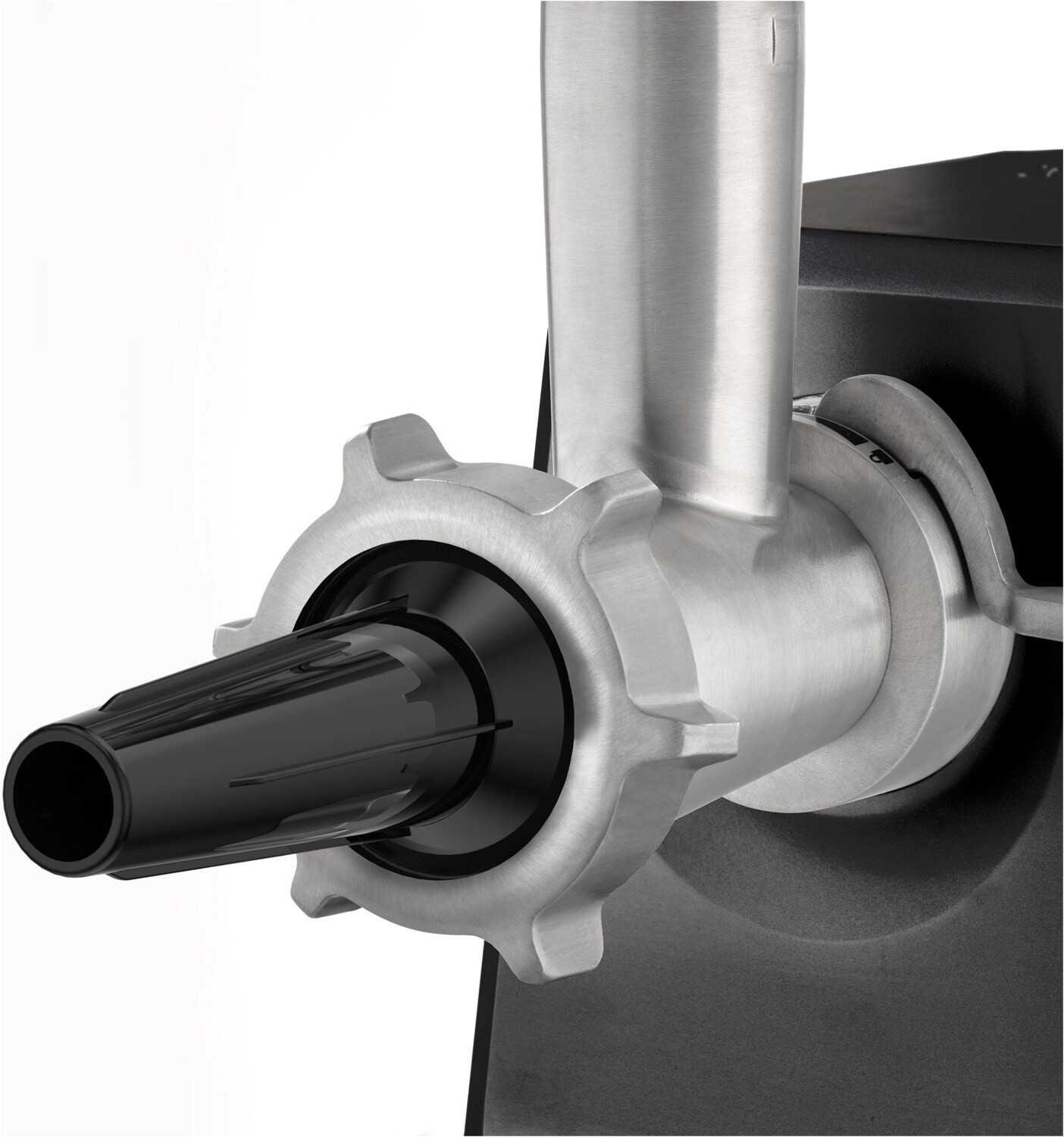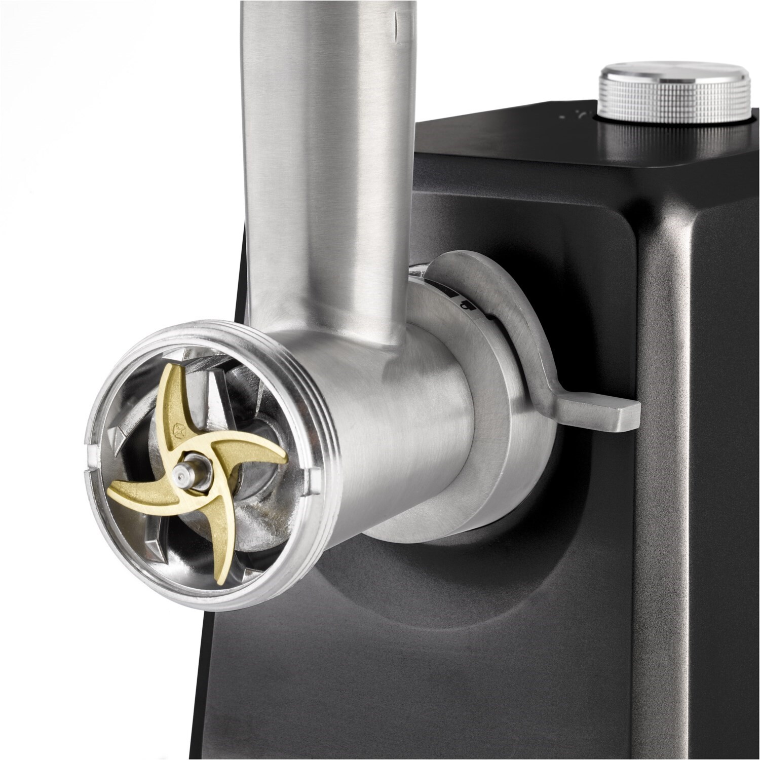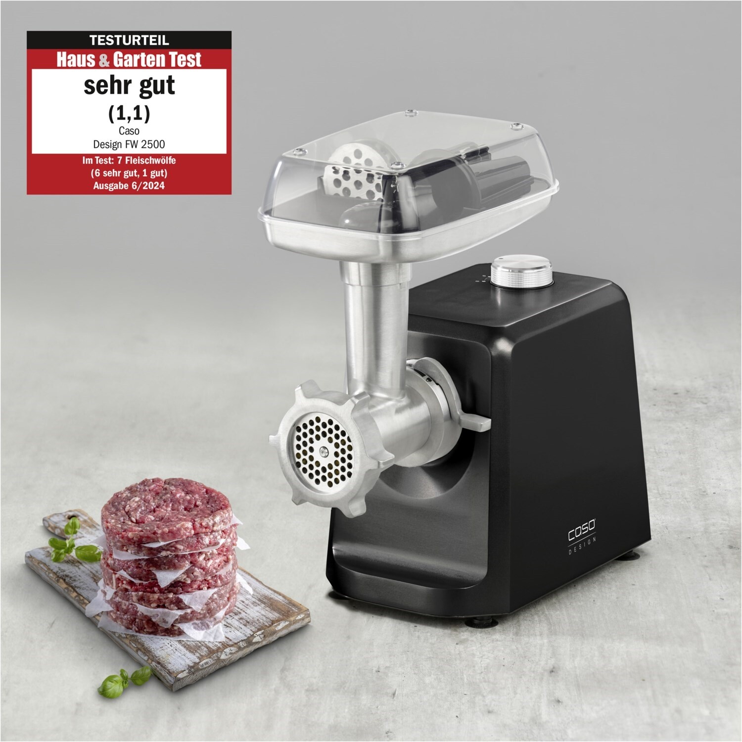 Statt z.B. fertiges Hackfleisch für einen Burger zu kaufen, kann man die Patties ganz nach Gusto selbst herstellen. Der leistungsstarke Motor mit max. 2500 Watt kann bis zu 2,5 Kilo Lebensmittel schnell verarbeiten und zerkleinert mühelos rohes und gegartes Fleisch, Fisch, Gemüse und vieles mehr. Neben der komfortablen Bedienung mit zwei Geschwindigkeits-stufen überzeugt der FW 2500 mit einer hochwertigen und langlebigen, titan-veredelten Klinge und einer praktischen Rücklauf-Funktion, die schonend Stauungen und Reste löst. Ein großes Aluminium-Einfülltablett ist inklusive, ebenso eine 2-in-1-Auffangschale, die außerdem als Abdeckung des Einfülltabletts dient. Und da der FW 2500 mit einem langlebigen Gleichstrom-Motor (DC) betrieben wird, ist er im Vergleich zu AC-Motoren auch noch geräuschärmer.