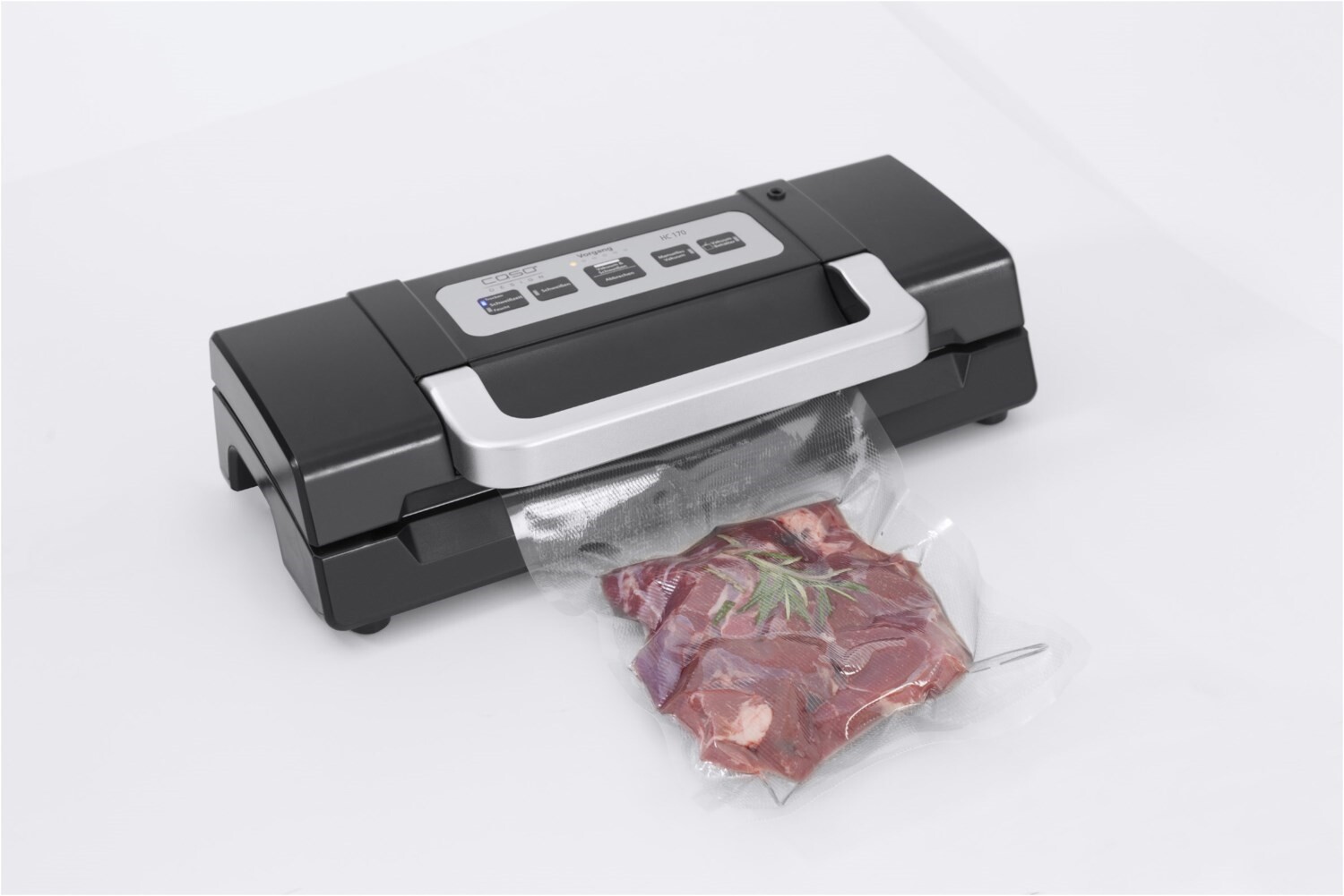 - Vakuumbehälter-Funktion, inklusive 10 Profi-Beutel 20 x 30 cm und Vakuumierschlauch für Vakuumbehälter (Vakuumbehälter nicht im Lieferumfang enthalten)