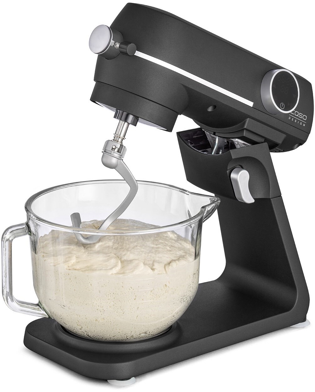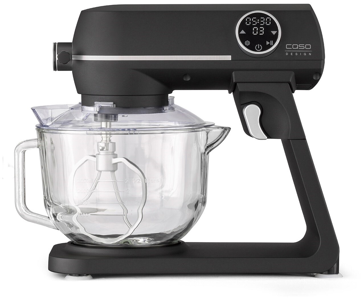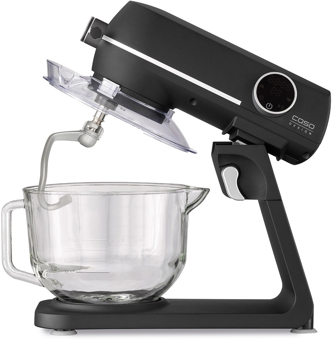 Die edle Küchenmaschine mit mattschwarzem Alu-Guss-Gehäuse und starken 1800 Watt bietet zehn individuell einstellbare Geschwindigkeitsstufen und ein LED-Display mit Touch-Bedienung. Je nach Wunsch kann eine Timer-Funktion mit Auto-Stopp bzw. eine Counter-Funktion für einen Überblick der Laufzeit eingestellt werden. Die neue Design Küchenmaschine wird mit einer 4,5 Liter großen Glasschüssel mit Griff , Ausguss und Mess-Skala angeboten.