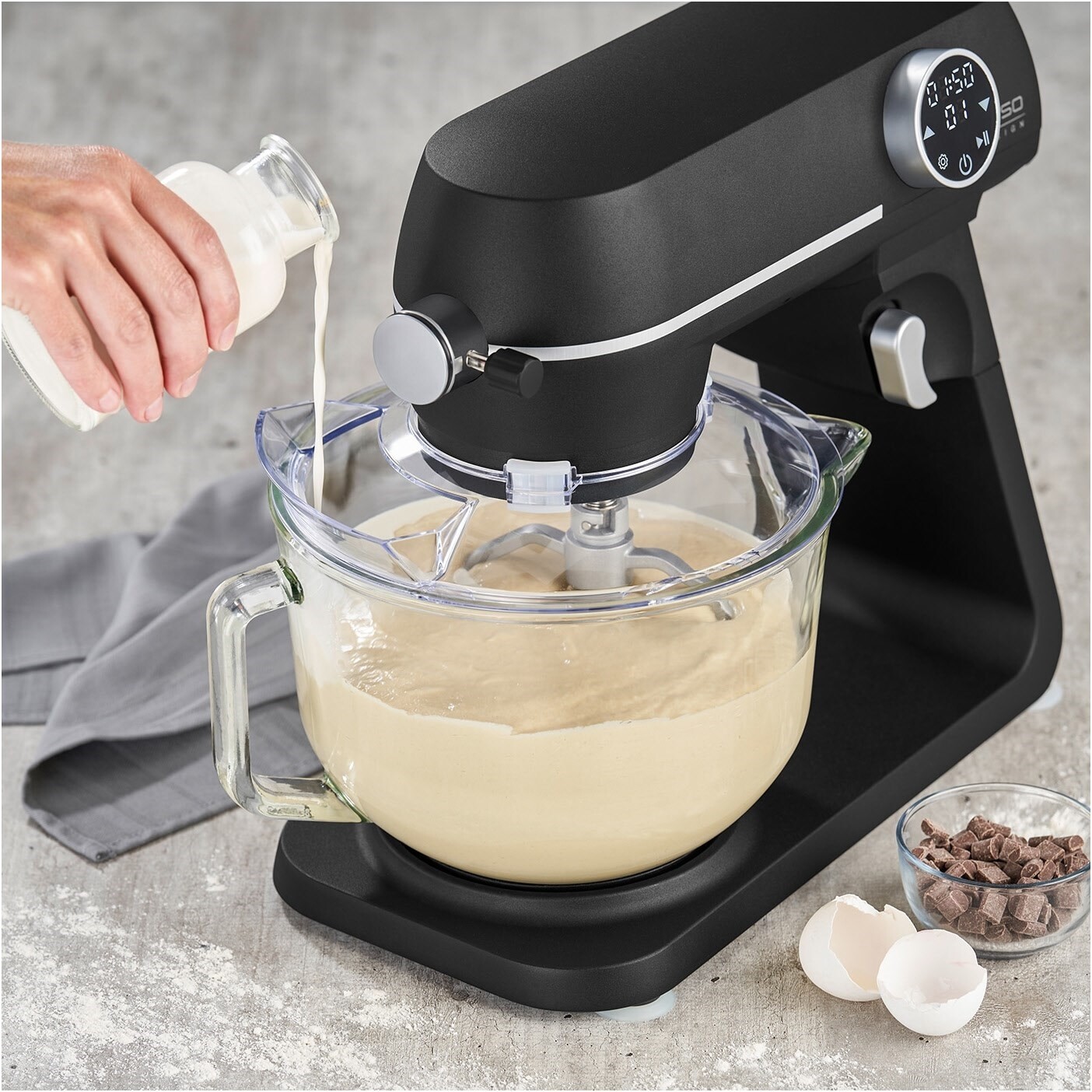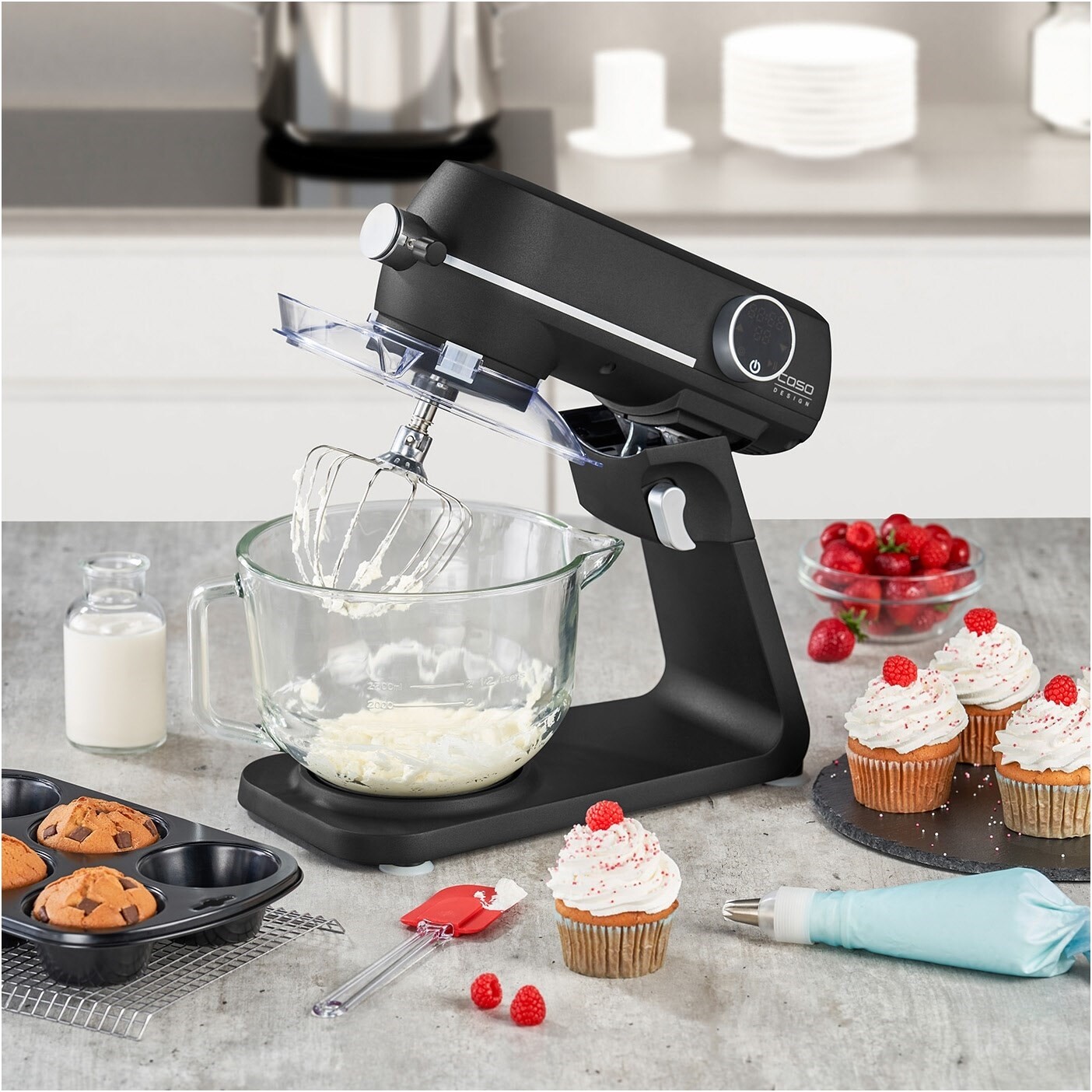 - Perfektes Ergebnis dank planetarischem Rührwerk (Rührelement dreht sich zusätzlich um die eigene Achse)