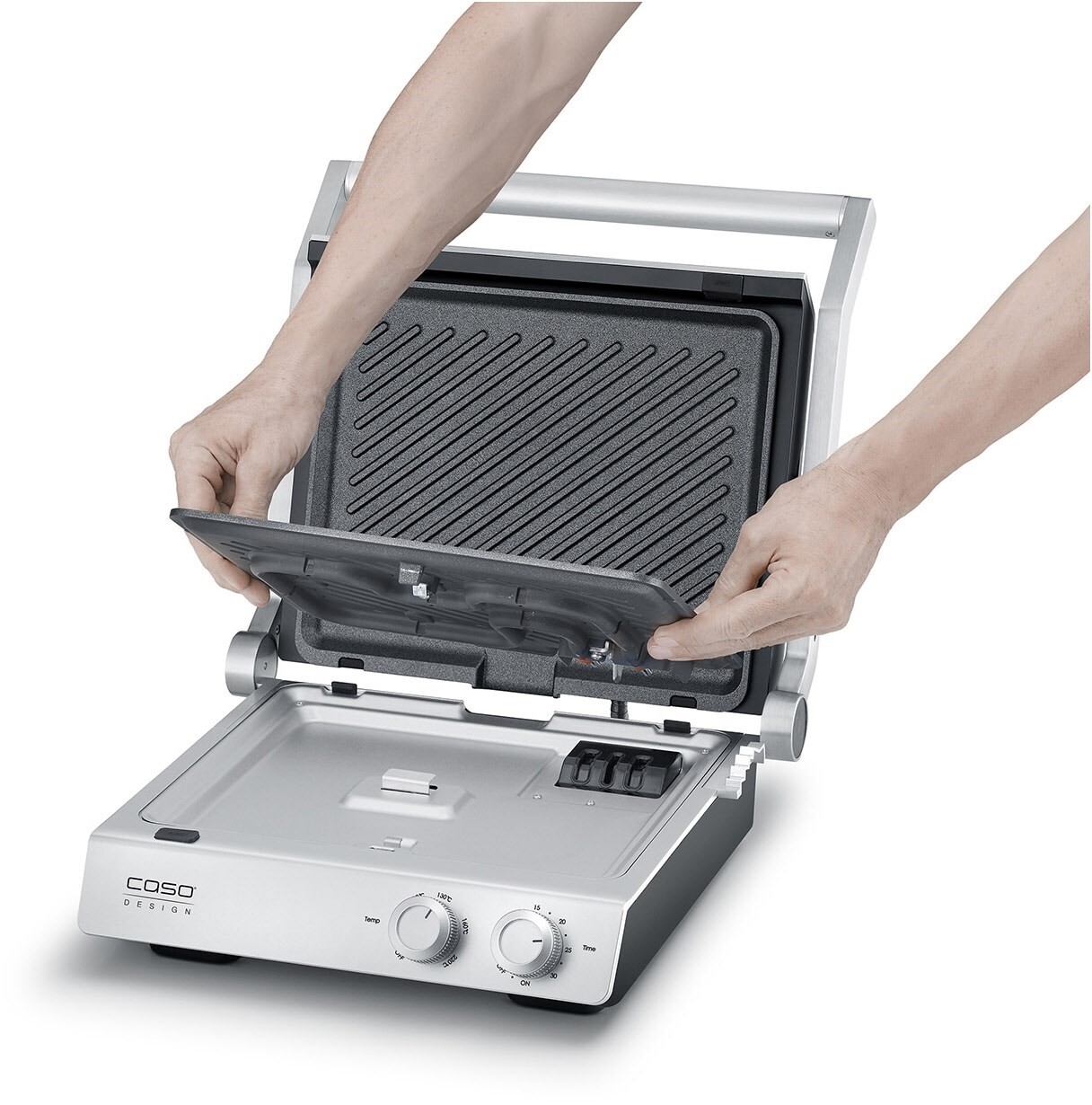 - Grillplatten und Fettauffangschale mühelos abnehmbar für eine einfache und bequeme Reinigung (spülmaschinengeeignet)