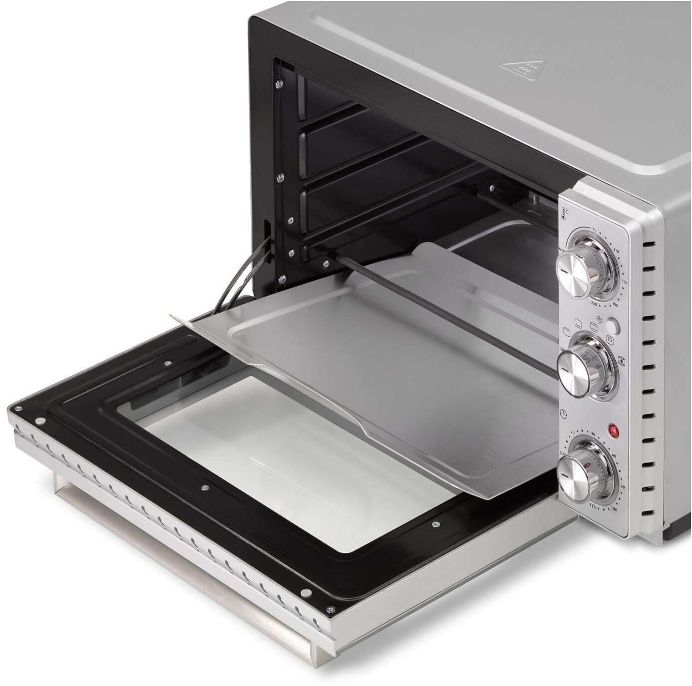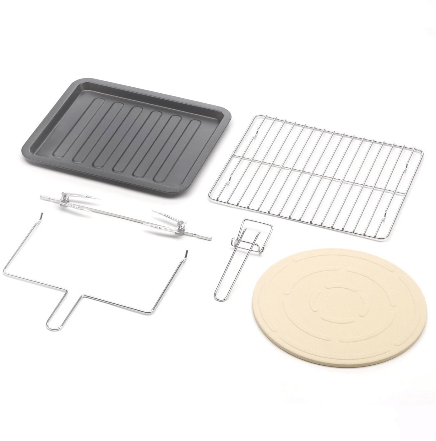 - Inkl. Grillrost, Drehspieß, antihaftbeschichtetem Backblech und praktischer Entnahmehilfen