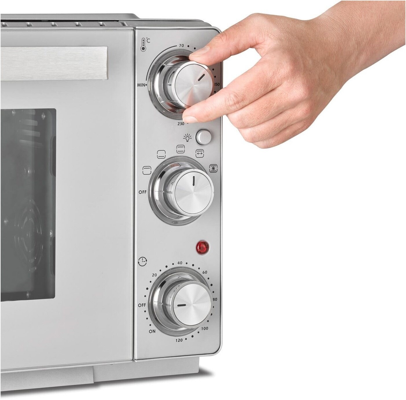 - Beste Back- und Grillergebnisse dank 5 unterschiedlicher Funktionen: Ober- und Unterhitze, Unterhitze, Oberhitze, Umluft, Grill & Drehspieß