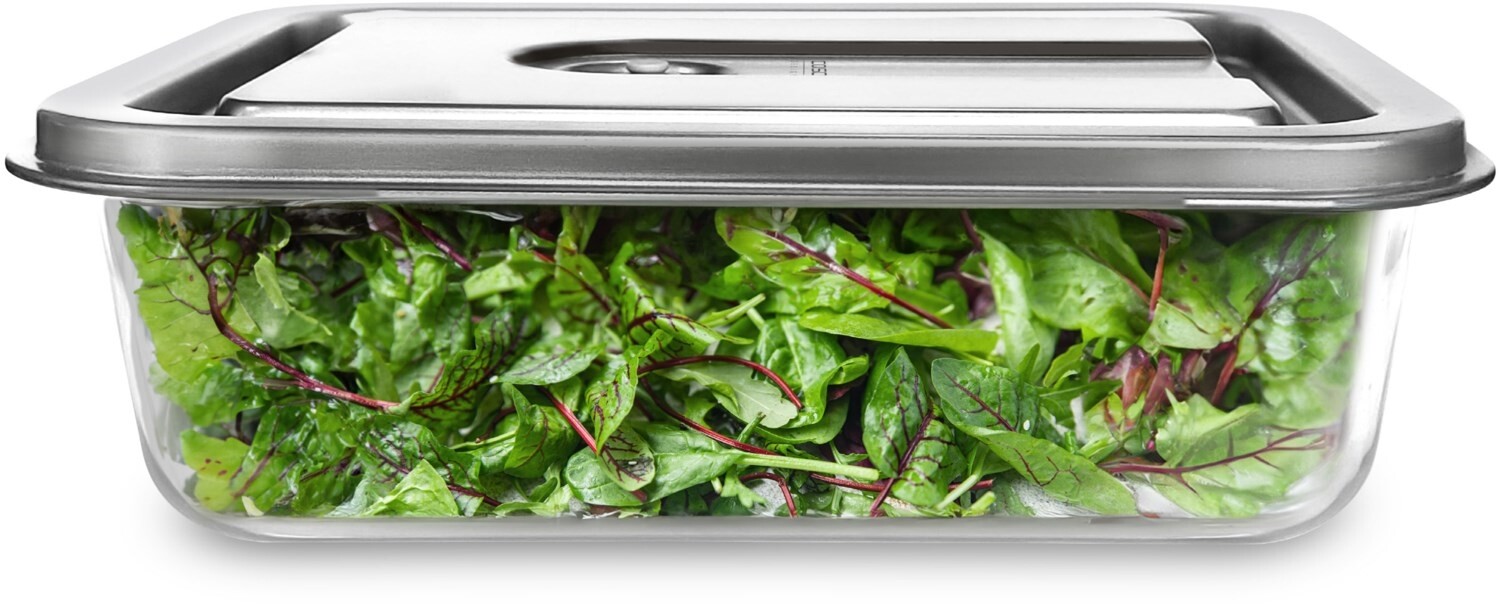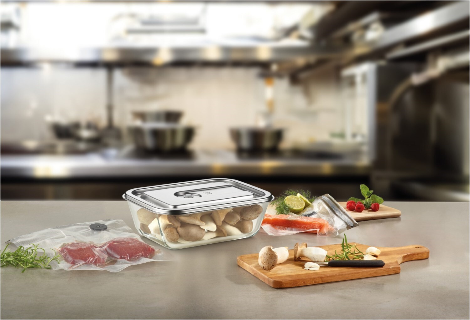 - Stapelbare, platzsparende Aufbewahrung mit anderen Behältern der “VacuBoxx Inox“ Serie (nicht enthalten)