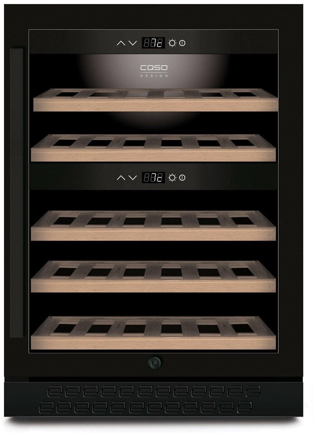 - Zwei getrennte Temperaturzonen, einzeln regelbar für Weiß- & Rotwein