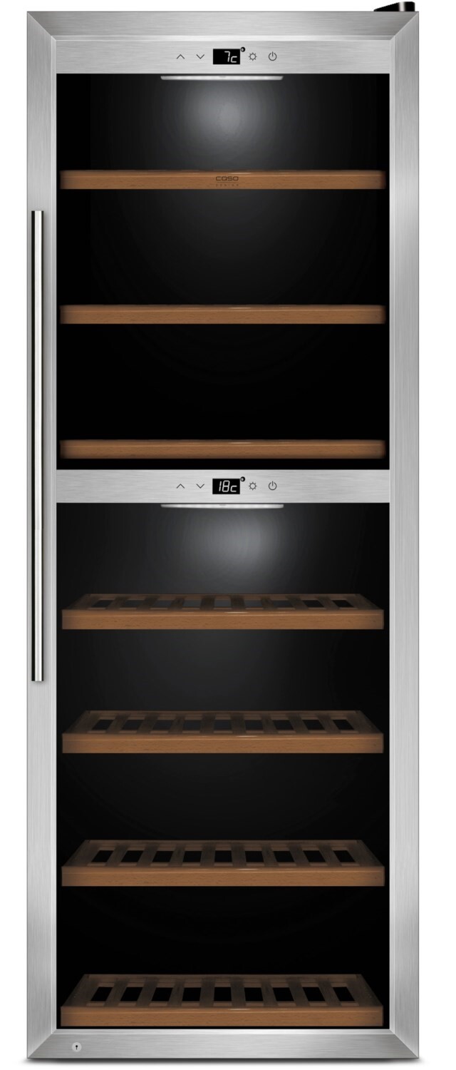 - Zwei getrennte Temparaturzonen, einzeln regelbar für Weiß- & Rotwein