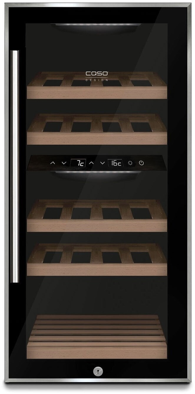 - Zwei getrennte Temperaturzonen für Weiß- & Rotwein, einzeln regelbar per Sensor-Touch