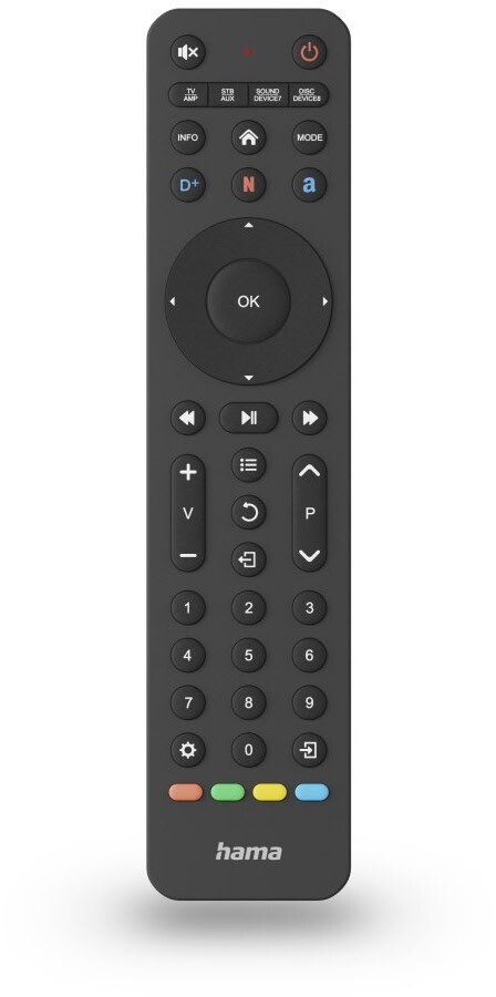 - Direkte Codeeingabe zur schnellen Programmierung der TV-Fernbedienung, die Codeliste finden Sie im Lieferumfang oder online auf der Hama Website