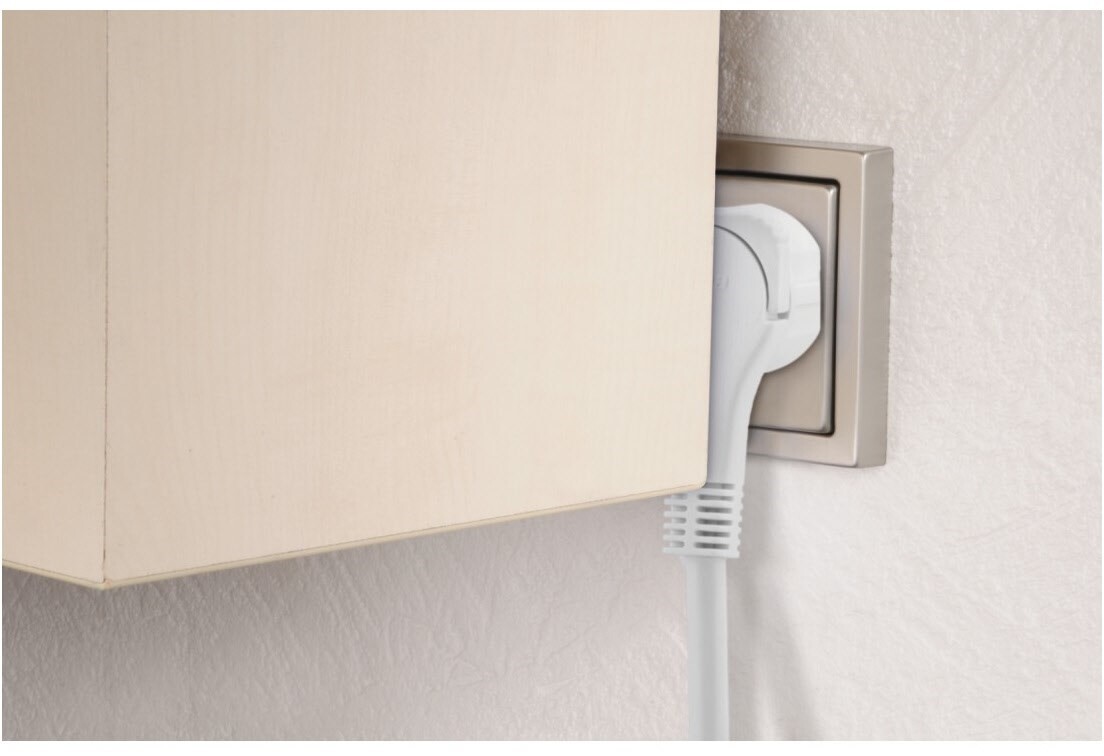 - Platzsparender und formschöner Flachstecker für schwer zu erreichende Stellen z.B. hinter Schränken