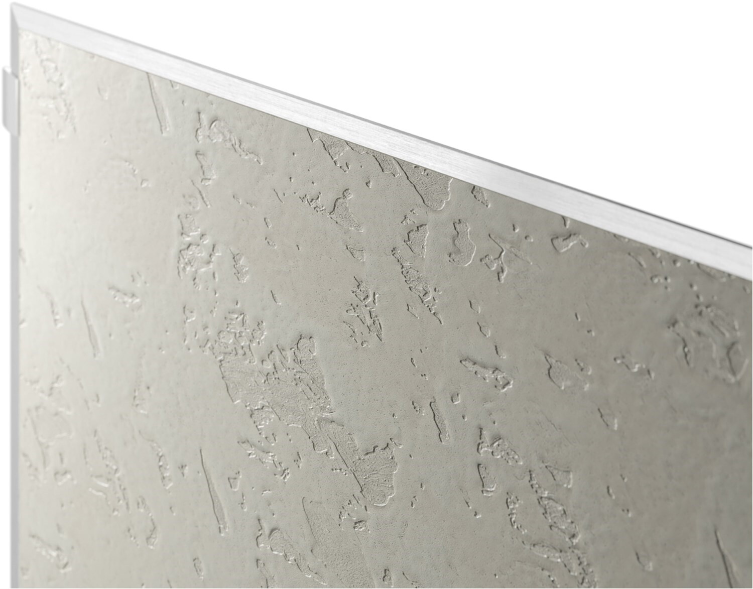 Geschaffen mit ausgesuchten echten Materialien wie einem vierseitigen, gebürsteten VollaluminiumRahmen, echtem Glasfaserverstärktem Beton, schwarzen Lava-Pigmenten oder Aluminium auf der Rückwand und einem drehbaren Tischfuß aus massivem Aluminium mit feiner gebürsteter Oberfläche. Die Rückwand aus Echtbeton verleiht jedem TV einen einzigartigen Fingerabdruck.
