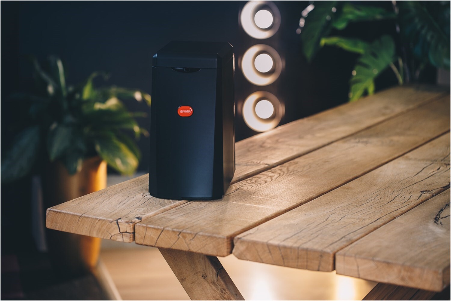 - Edles, hochwertiges Design: Mattes Schwarz mit NIVONA Logo