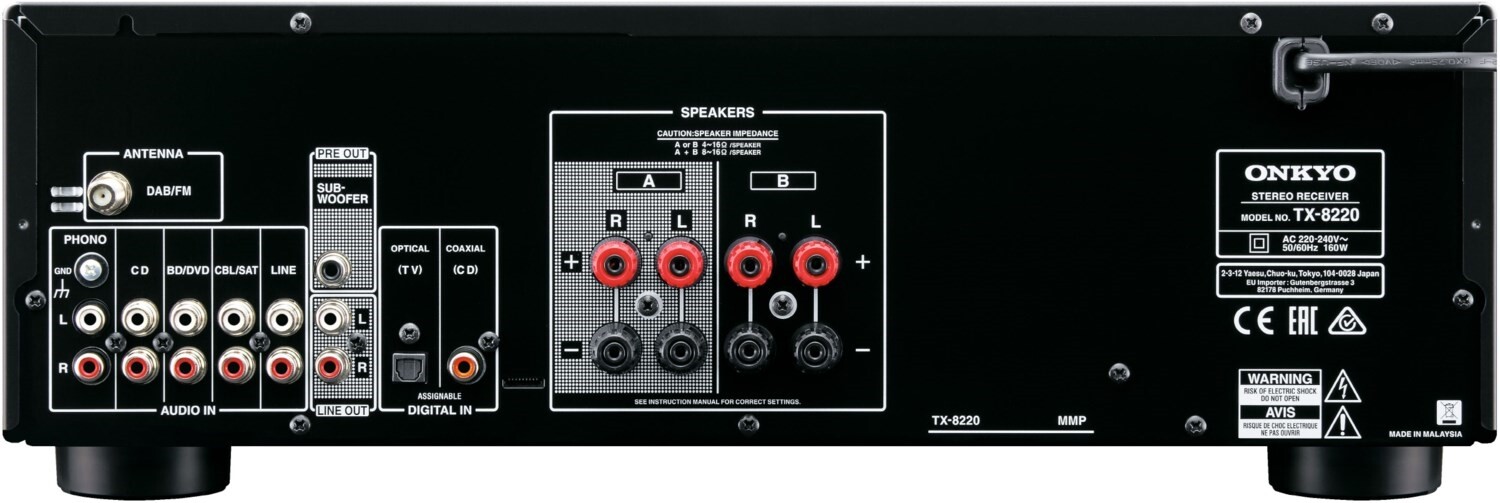 Das Gerät bietet alle grundlegenden Funktionen wie digitale Audioeingänge für TV und BD/DVD-Player sowie vier analoge Eingänge mit Line-Pegel für Geräte wie CD-Player. Highlights des TX-8220 sind der MM-Phono-Eingang für Plattenspieler, ein Radiotuner für DAB+ und FM/RDS mit 40 Senderspeichern sowie die integrierte Bluetooth-Technologie. Dank automatischer Verbindungsfunktion können Sie durch einfaches Tippen auf Touchscreen, Trackpad oder mit der Maus Musik von Apps über Ihre Lautsprecher abspielen.