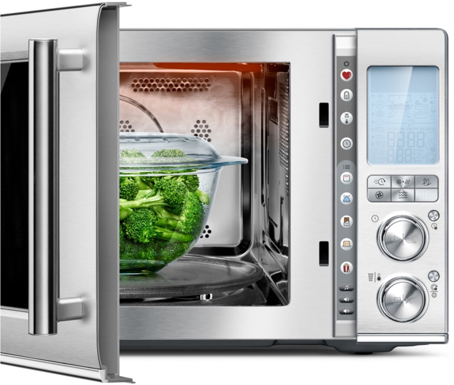 Kombinierendes Kochen mit der Heißluftfrittier-, Umluft-, und Mikrowellenfunktion.