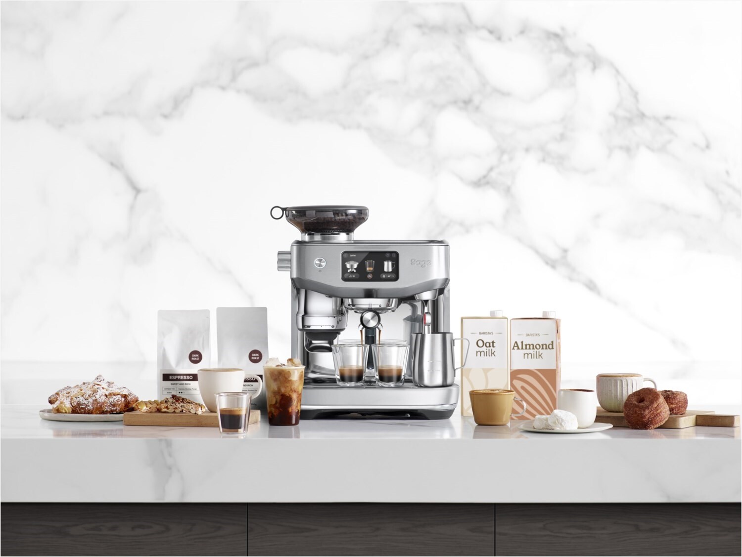 - 11 voreingestellte Rezepte: Flat White, Latte, Cappuccino, Espresso, Long Black, Babyccino, Heiße Schokolade, Tee, Café Crema, Cold Brew & Cold Espresso