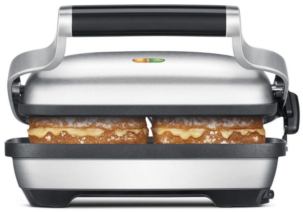 Die Deckplatte verfügt über ein Gegengewicht-Scharnier, das 4 mal weniger Druck ausübt und das Gewicht somit von 2 kg auf 425 Gramm reduziert – für luftige Sandwiches.