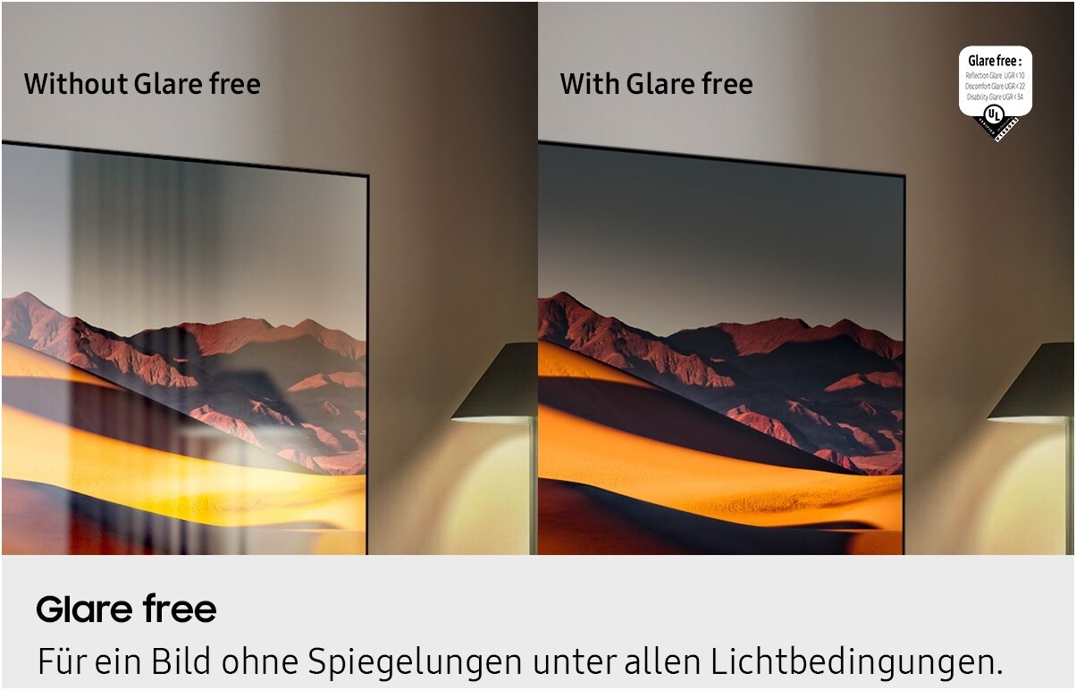 - Mit Neo Quantum HDR spektakuläre Kontraste und beeindruckende Details genießen und durch Glare Free wird ein klares Bild ohne Spiegelungen wiedergegeben.