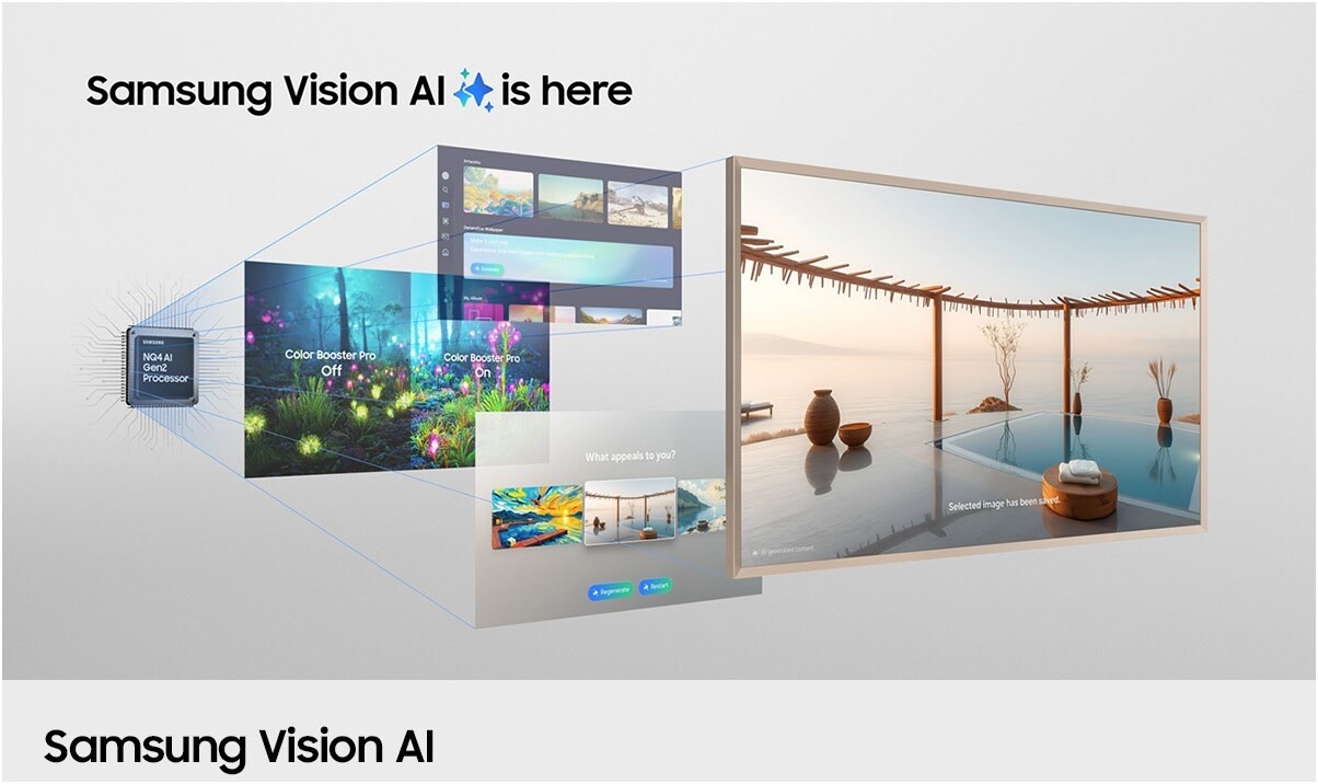 - Mit Samsung Vision AI kommst du automatisch mithilfe von KI in den Genuss beeindruckender Bildqualität, eines personalisierbares Fernseherlebnis und einer optimierten Tonausgabe.