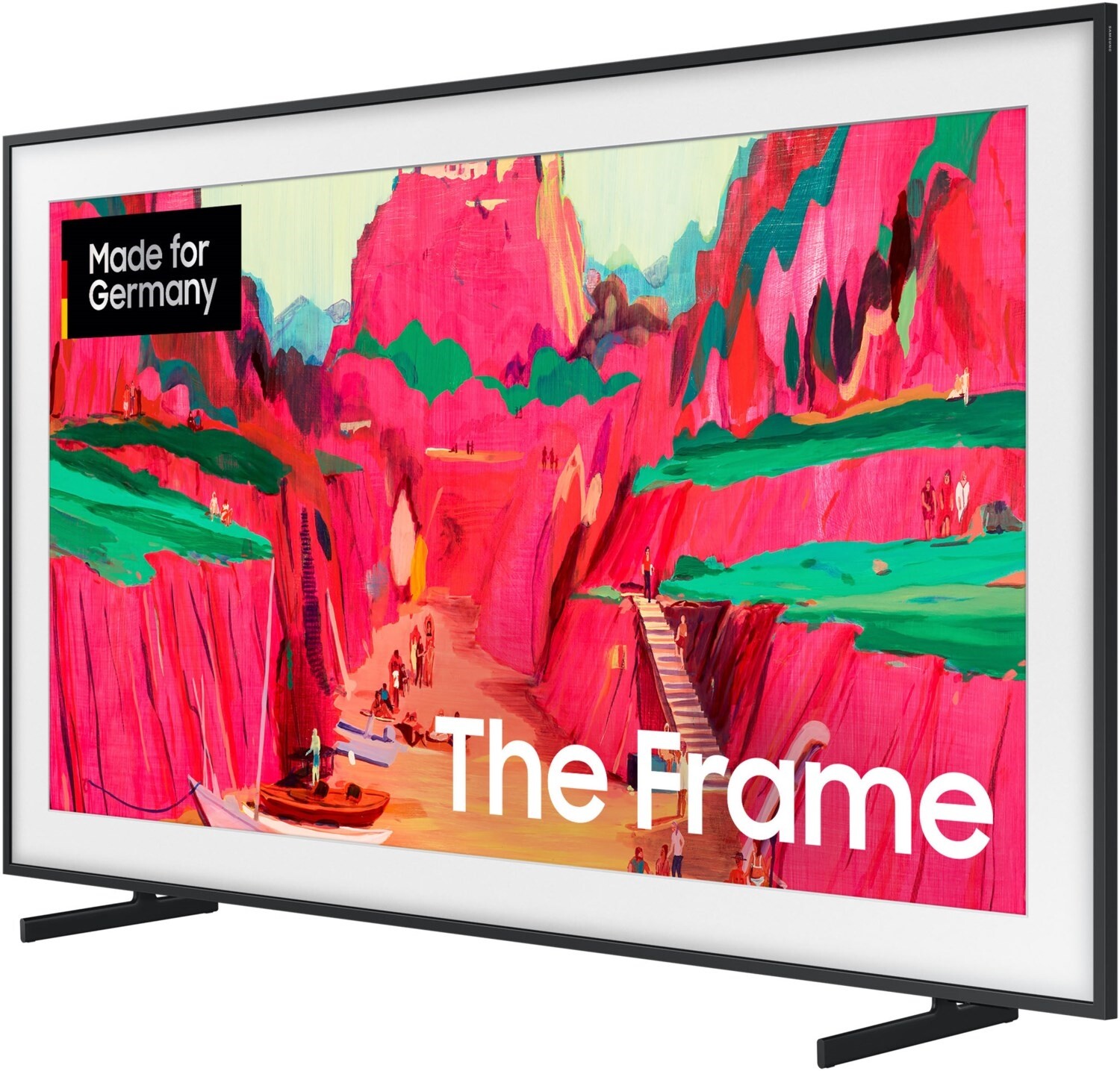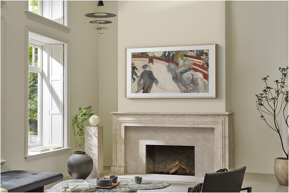 - Verwandle mithilfe des Art Modes deine Wohnung in eine virtuelle Kunstgalerie mit wechselnden Kunstwerken, wenn du gerade nicht Fernsehen guckst