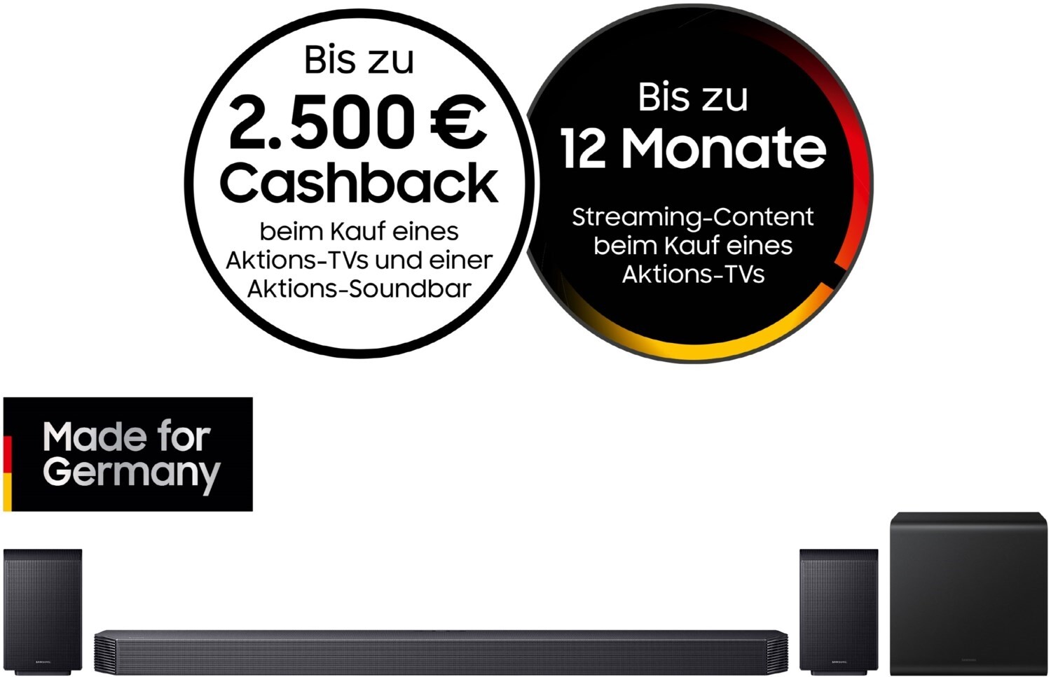 Intensiviere deinen Soundgenuss, indem du die hinteren Lautsprecher mit der Soundbar synchronisierst, sodass beide denselben Sound abspielen.