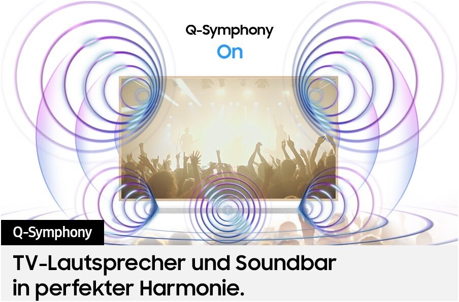 - Mit Q-Symphony die Lautsprecher des TVs und der Soundbar perfekt aufeinander abstimmen