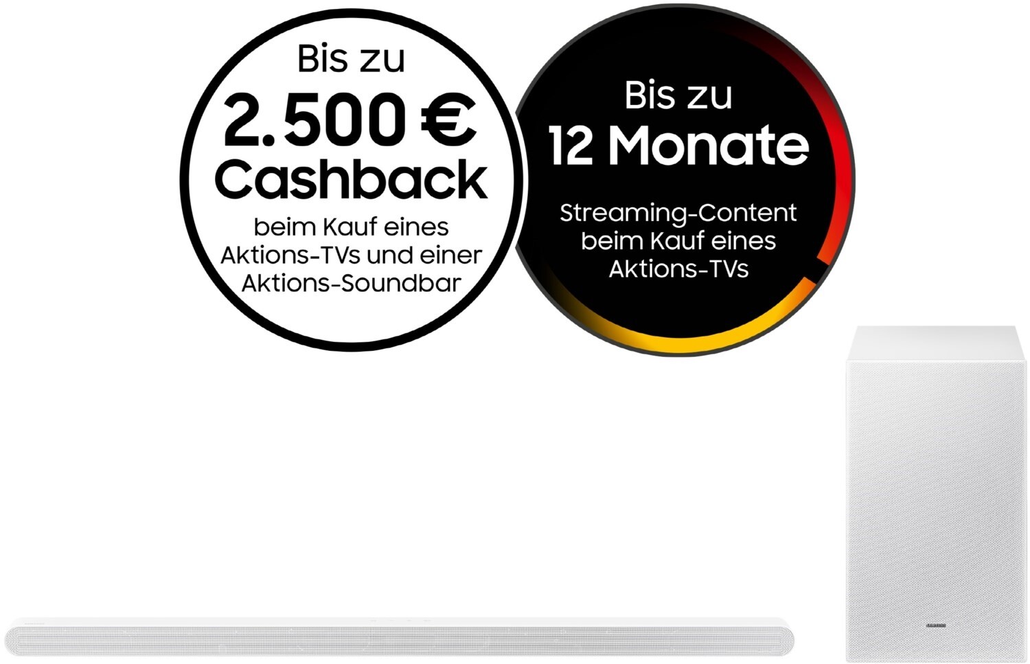 - * Aktions-TV mit -Soundbar kaufen und satten Cashback sichern. Aktionszeitraum: 19.01.2026 bis 10.05.2026. Teilnahmebedingungen, Aktionsgeräte mit länderspezifischem Modell-Code sowie modellabhängige Cashbacks unter: samsung.de/mixmatch