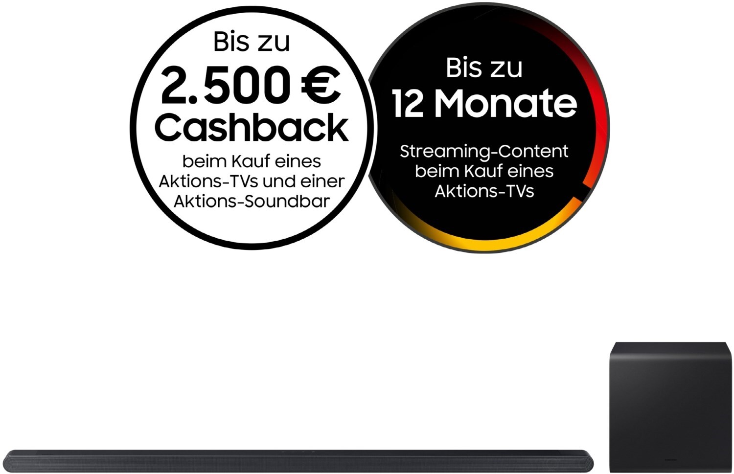- * Aktions-TV mit -Soundbar kaufen und satten Cashback sichern. Aktionszeitraum: 19.01.2026 bis 10.05.2026. Teilnahmebedingungen, Aktionsgeräte mit länderspezifischem Modell-Code sowie modellabhängige Cashbacks unter: samsung.de/mixmatch
