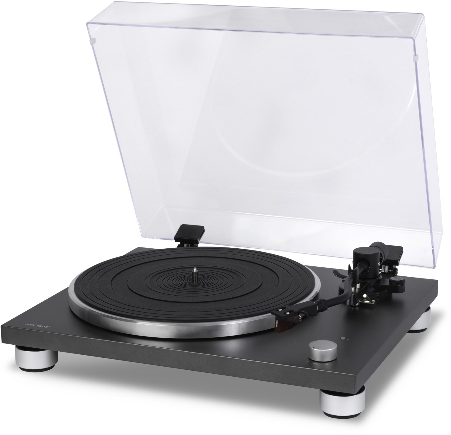 - Höhenverstellbarer Tonarm mit reibungsarmen Präzisionslagern