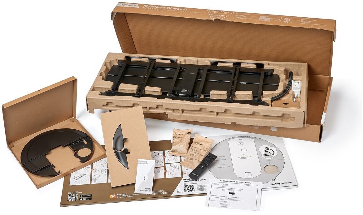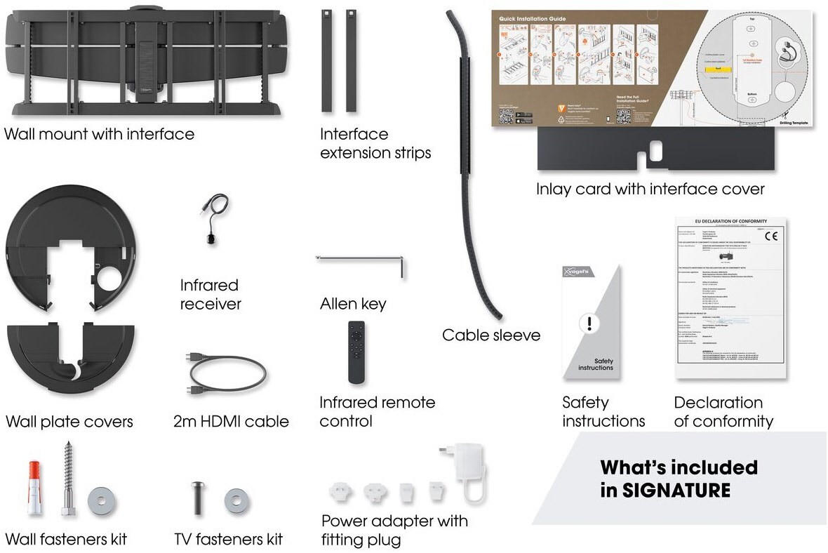 Die Installation der SIGNATURE MotionMount PRO Wandhalterung ist sehr einfach, genau wie Sie es von Vogel's erwarten. Alles, was Sie zur Montage des Systems benötigten, ist in der Verpackung enthalten. Und dank 3D-Leveling™ können Sie den Bildschirm nach der Installation ganz einfach waagerecht, senkrecht und auch in der Tiefe ausrichten. Auch wenn er an einer unebenen Wand montiert ist.