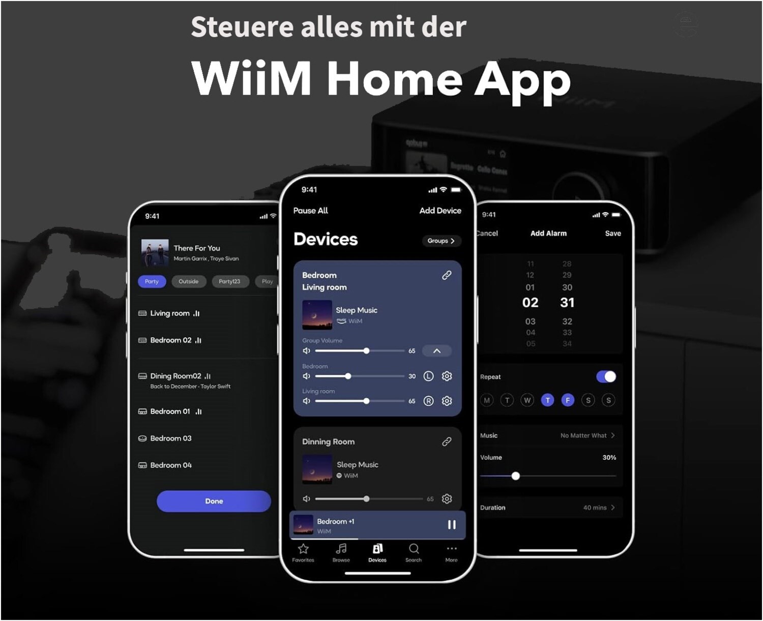 Über die WiiM Home App greifst du bequem direkt auf deine Lieblingsdienste wie Spotify, TIDAL, Qobuz oder Amazon Music zu, und zwar in Hi-Res Audio bis 24 Bit/192 kHz. Und mit Features wie HDMI ARC, Dolby Digital, Multiroom-Funktion, Sprachsteuerung und Smart-Presets wird der Amp Ultra zur intelligenten Schaltzentrale für dein Zuhause.